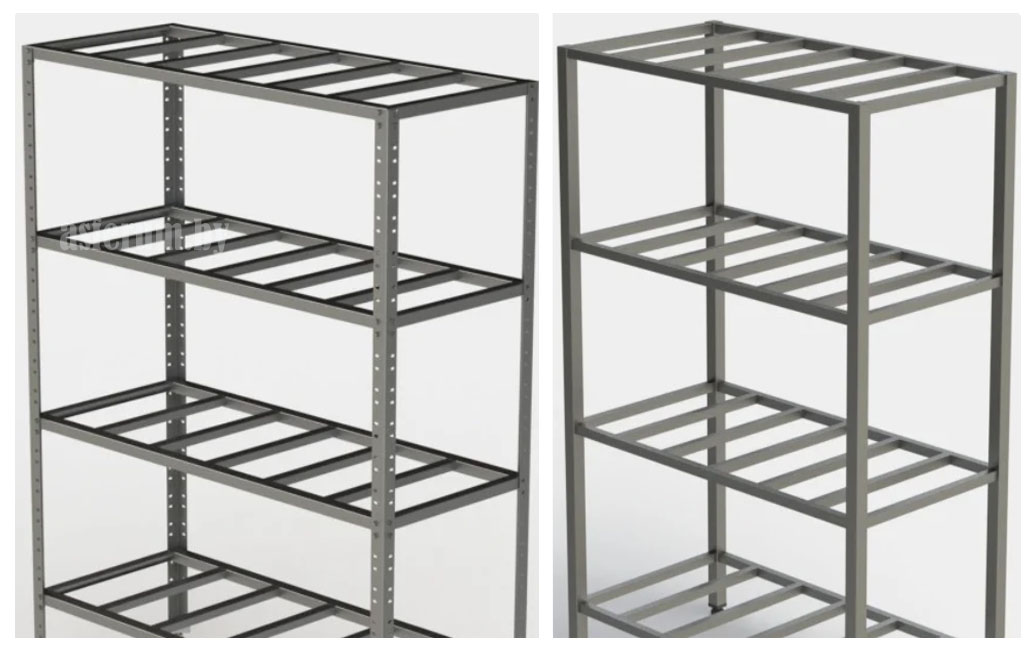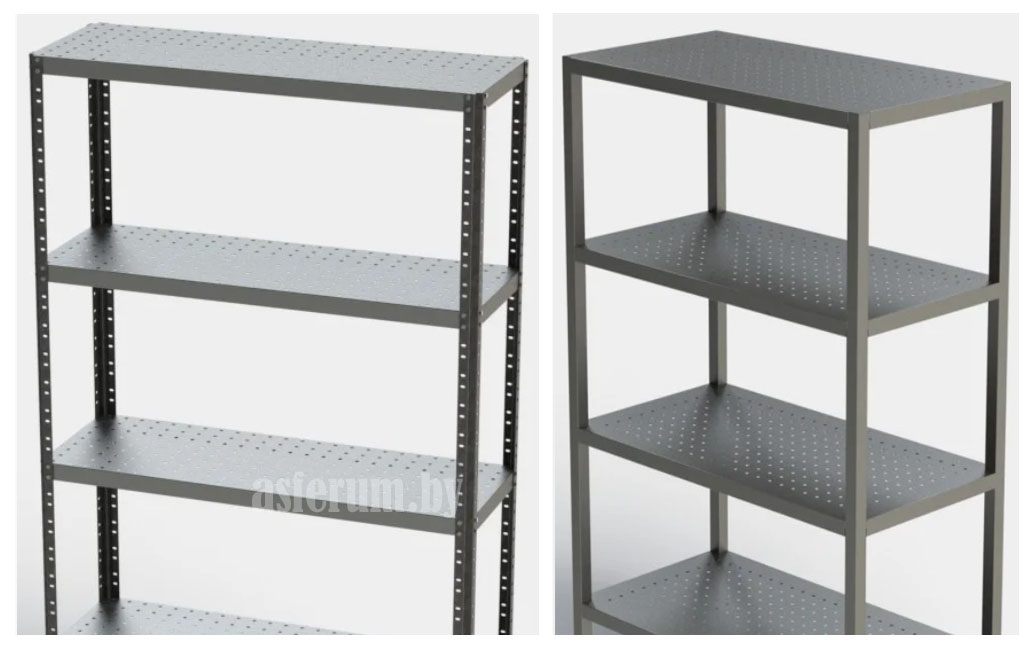 Конструкция: Разборный стеллаж имеет перфорированный профиль стоек, который обеспечивает возможность регулировать расположение полок в секции по высоте. Материал исполнения: полки изготавливаются из оцинкованной (1 мм; 1,5 мм) или нержавеющей стали (0,8 мм; 1 мм), стойки: оцинковка или нержавеющая сталь (1,5 мм). В стандартной комплектации стеллаж имеет 4 полки. Шаг перфорации стоек - 45 мм. Возможно изготовление нестандартных стеллажей высотой до 2,5 м, длиной до 2 м, глубиной до 1 м. Конструкция полки: сплошная или перфорированный стальной нержавеющий лист с отверстиями. Разборный корпус обеспечивает удобную доставку и возможность регулировать полки по высоте под необходимое расстояние между полками.