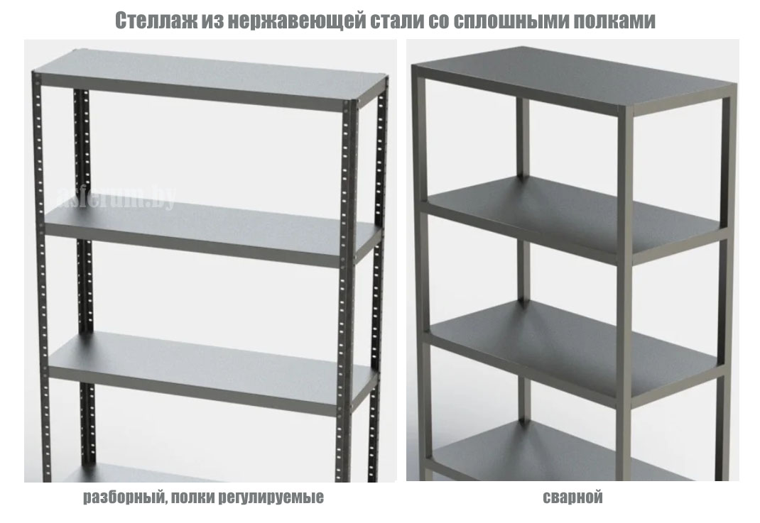 Модель 5: Стеллаж со сплошными полками из нержавеющей стали