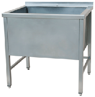 Ванны котломоечные из нержавеющей стали предназначены для мытья варочных котлов и кухонной посуды. Ванна моечная котломойка изготавливается из листовой нержавеющей стали AISI 430 толщиной 1,5 мм и профильной трубы 40*40 мм. Емкость ванны - сварная.