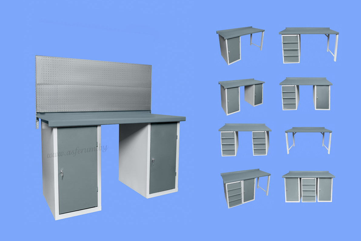 Производство металлической мебели позволяет изготовить верстак, стол слесарный или стол монтажника. Кроме того, на складе в Минске имеется большой ассортимент составных элементов, из которых мы можем быстро скомплектовать любой заказ. У нас можно заказать рабочие столы с металлической столешницей, тумбы с полками, выдвижными ящиками для инструментов, защитные экраны. На заказ можно воплотить в жизнь многое - будь-то верстак на колесах или с подсветкой.