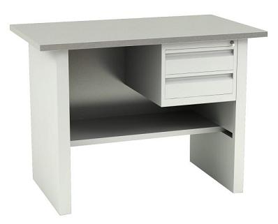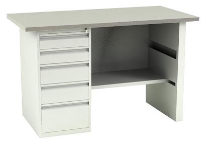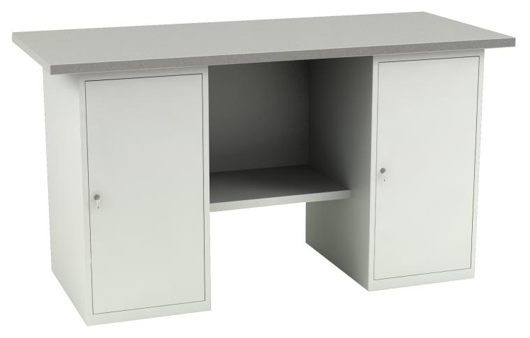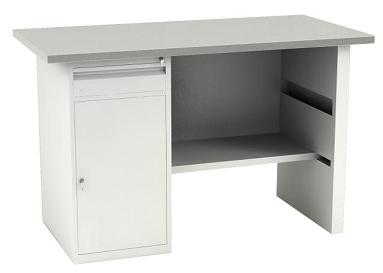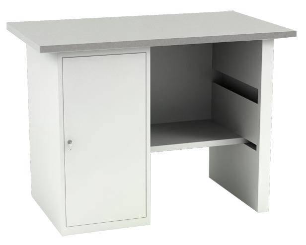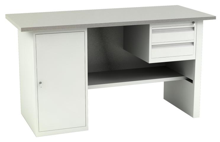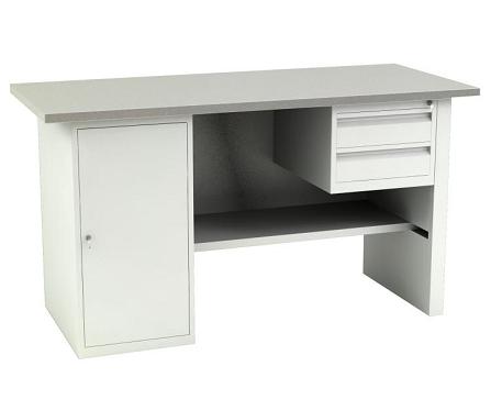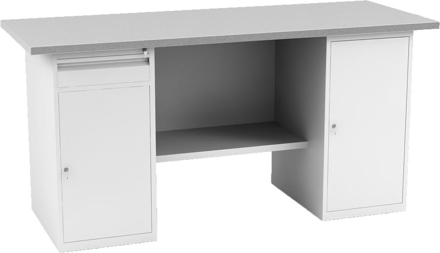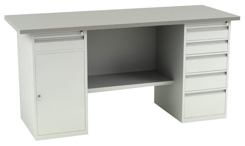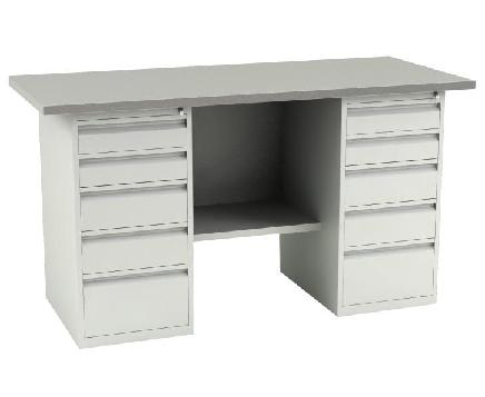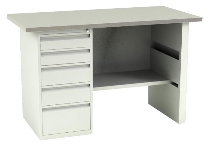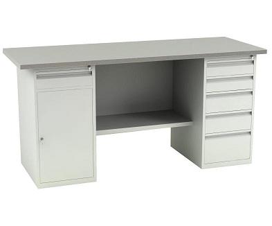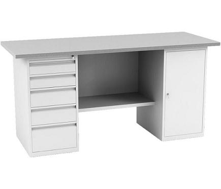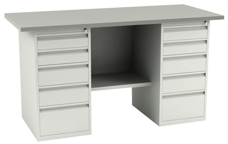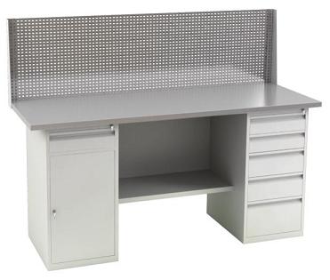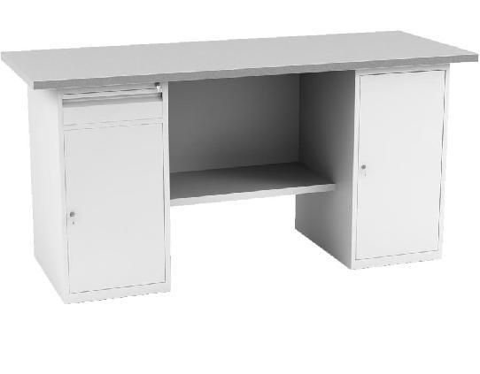 Технические характеристики: Материал исполнения:- столешница верстака изготавливается из оцинкованной стали 1,2 мм + фанера, толщиной 32 мм (2 слоя); - тумба верстачная: из стали 0,8 мм, покрытие – полимер RAL 7035. Тумбы верстаков комплектуются замками Eurolocks. На фотографии (фото 1) представлен верстак безтумбовый. На фотографиях (фото 2 - фото 5) представлены однотумбовые верстаки. На фотографиях (фото 6 - фото 13) представлены двухтумбовые верстаки.